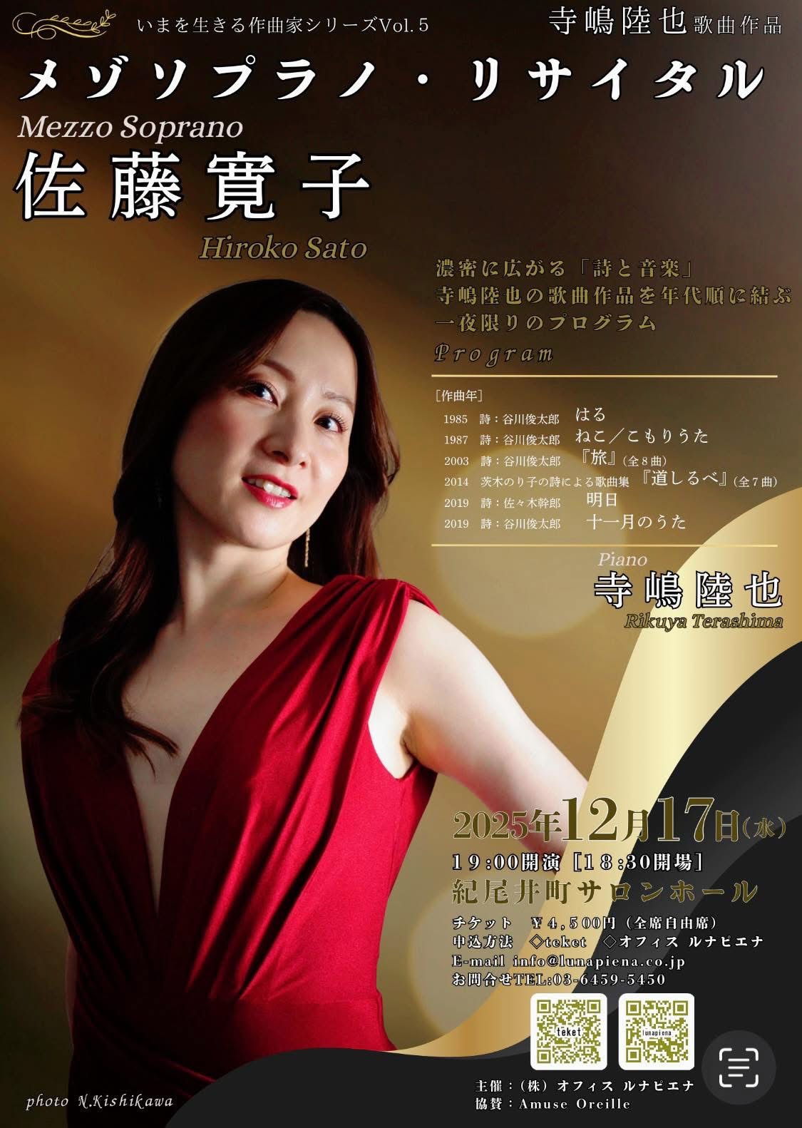 今年は、ピアニスト・指揮者としても活躍する作曲家 寺嶋陸也さんの歌曲作品を取り上げます。作曲家ご本人によるピアノ伴奏でお送りする贅沢なコンサートです!